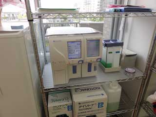 全自動血球計数器:必要採血量は30μl。採血量の少ない検査機器です。
